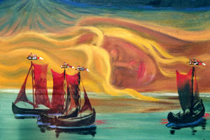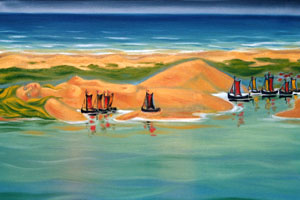 Triptychon von Eduardas Jonusas, wohnhaft in Nidden: Die Legende von Neringa